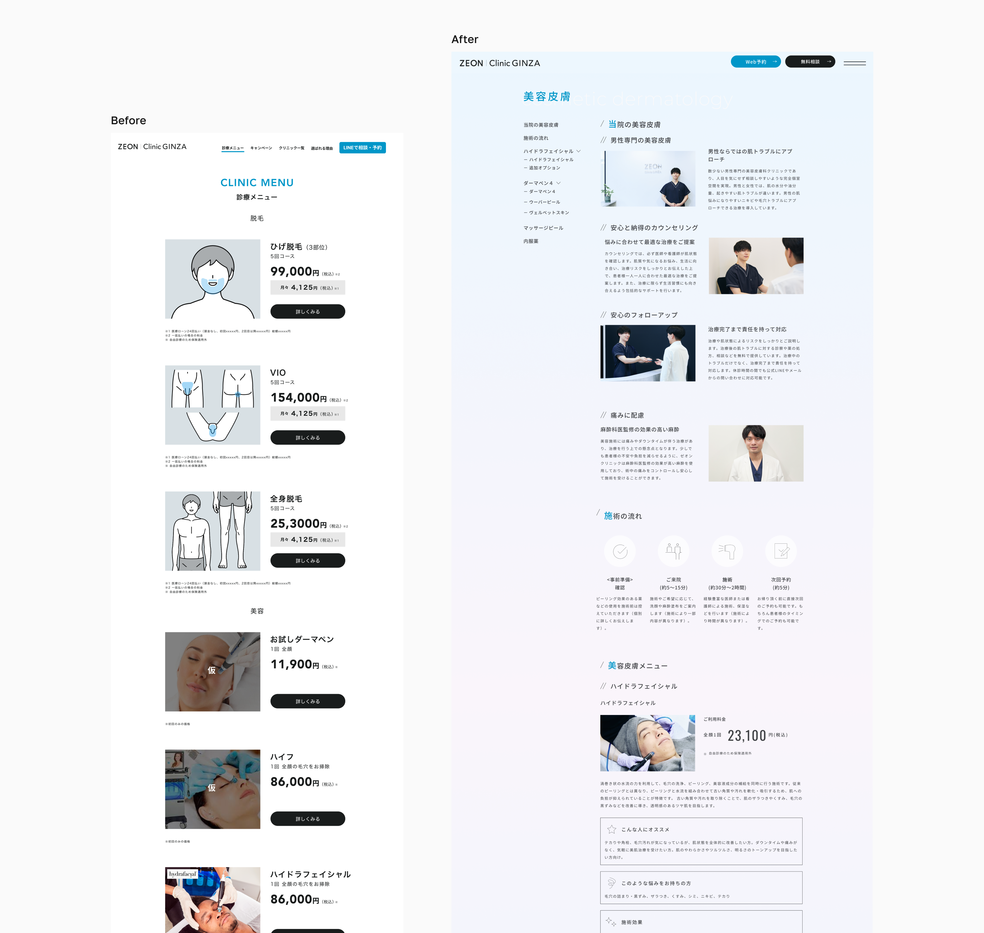 施術の魅力が端的に伝わることを前提に、目的に応じた見せ方を設計しています。