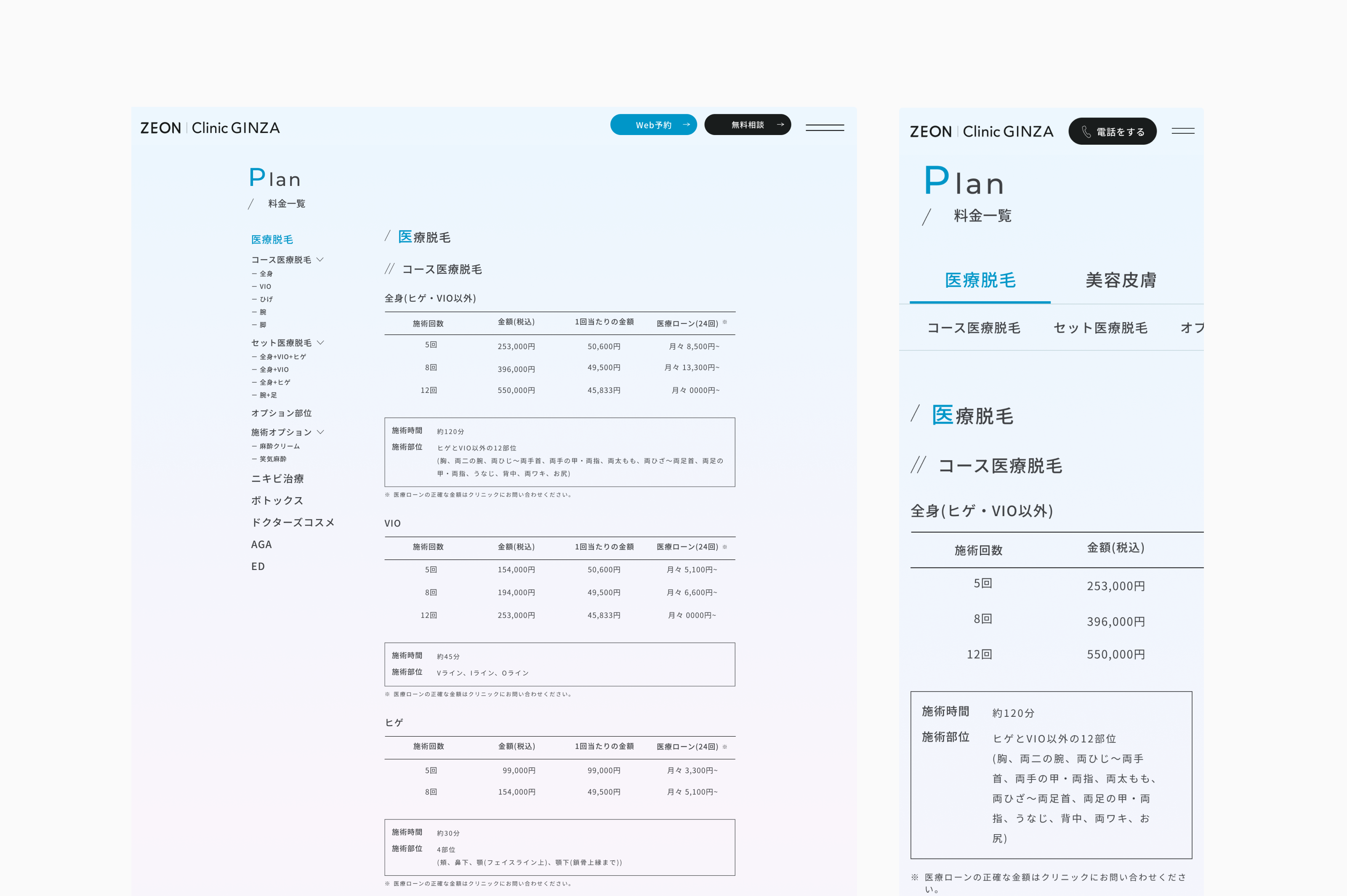 どちらとも来院時の不安や疑問を軽減し、スムーズに施術内容を理解できるよう、デザインでは情報の整理と見せ方を重視しました。
