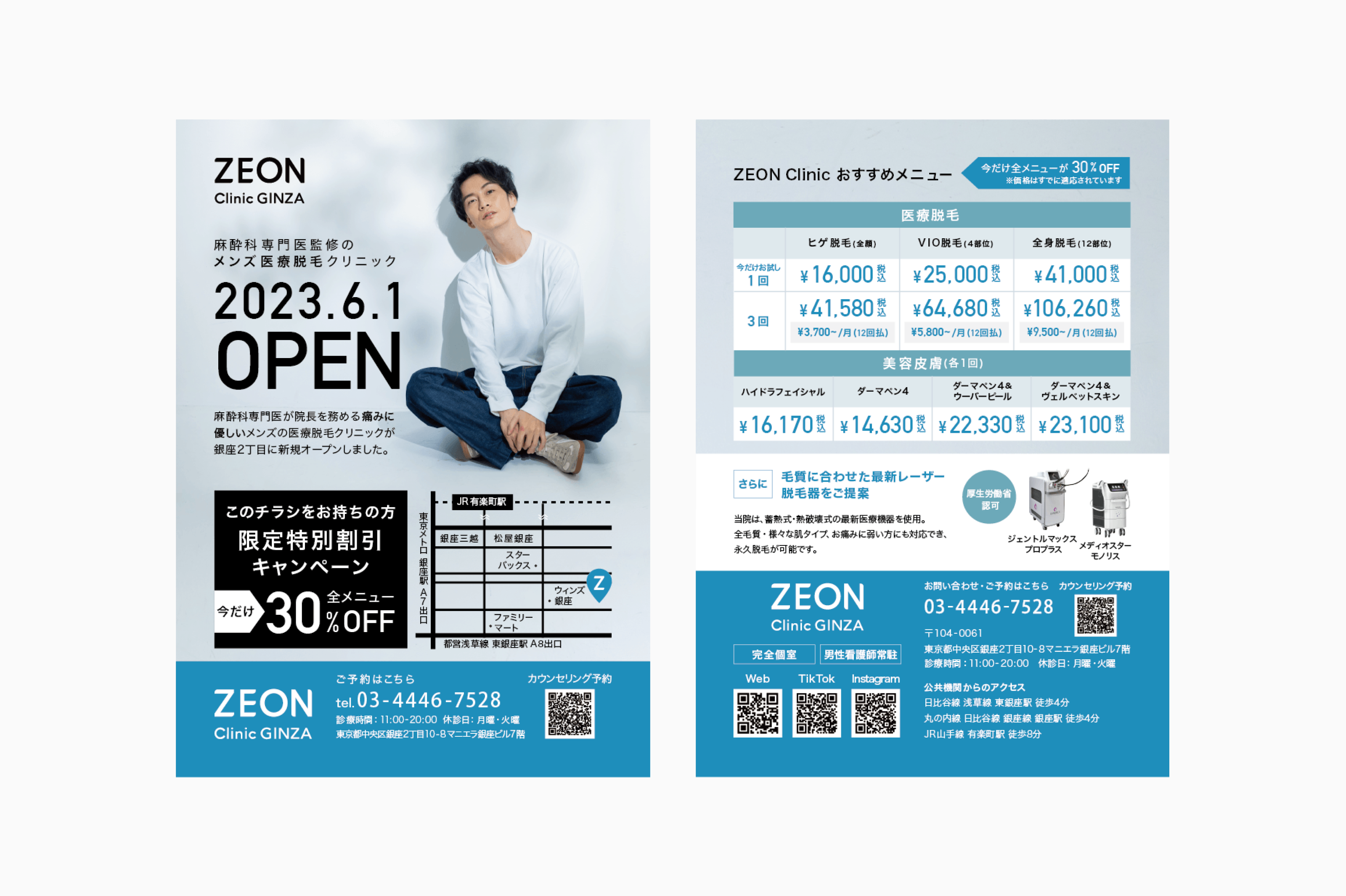 銀座のメンズトータルクリニック「ZEON Clinic GINZA」にて、Webサイトおよび各種グラフィック制作を担当しました。